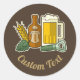 Bier-Darstellung. Flasche, Glas, Öfen, Hopfen und Gerste. Benutzerdefinierte Hintergrundfarbe. Eigener Text.