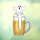 Der spukhafte Geist ist bereit mit Boo und Bier für das diesjährige Halloween.