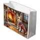 Biewer Terrier Fireplace with Christmas Lights Große Geschenktüte