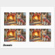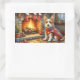 Biewer Terrier Fireplace with Christmas Lights Rechteckiger Aufkleber