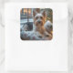 Biewer Terrier With Christmas Lights Holiday Quadratischer Aufkleber