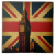 Big- Benfliese kennzeichnet einen Vintagen Artturm auf eine gealterte Gewerkschafts-Jack-Flagge. Dieses ist eine digitale Collage, die durch grafisches gemacht wird, erahnen.