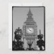 Offiziell St. Stephen's Tower genannt, aber die Welt als Big Ben bekannt (der Name, der der Glocke im Inneren gegeben wird) in schwarz-weiß mit der Krone und Zepter aus dem schmiedeeisernen Tor rund um Westminster Palace.