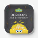 Set the tone for a fun-filled celebration with these Sesame Street birthday plates featuring Big Bird! The design showcases Big Bird’s cheerful smile and iconic yellow feathers, paired with a playful chalkboard background and colorful confetti accents. Perfect for kids’ birthday parties, these vibrant and whimsical plates are fully customizable, making it a delightful way to celebrate with guests at your special event.
