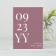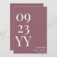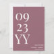 Verkünden Sie Ihren besonderen Tag mit dem Big Bold Date Dusty Pink Save the Date. Dieses minimalistische Design mit einem weichen, rosa Hintergrund mit fett weißen Buchstaben und Zahlen zeigt Ihren Hochzeitstermin in prominenter Weise neben dem Bräutigam und den Namen der Braut. Die Karte ist perfekt für moderne, romantische oder hochzeitliche Hochzeiten geeignet und vereint Einfachheit und Charme, damit Ihre Gäste ihre Kalender mit Spannung kennenlernen können.
