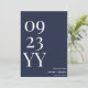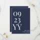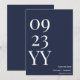 Machen Sie eine Aussage mit dem Big Bold Date Navy Blue Save the Date. Dieses minimalistische Design mit einem glänzenden marineblauen Hintergrund mit fett weißen Buchstaben und Zahlen hebt das Hochzeitstermin hervor, begleitet vom Bräutigam und den Namen der Braut. Diese rette Karte verbindet Einfachheit und Eleganz und sorgt für stilvolle Termine.
