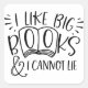 Ich mag große Bücher und kann nicht aufklebern. Schwarzweißtext und Kontur.