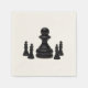 Große, schwarze Schachfigur, umgeben von vier kleinen Schachzügen, abgeschieden vor weißem Hintergrund. Bigness für Größe zu nehmen.