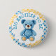 A cute boy's baby shower big brother to be button with adorable crocheted teddy bear.