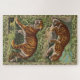 Leopard und Tiger mit üppigem Dschungelhintergrund sind das Merkmal dieses Designs, das aus einer antiken Buchillustrierung von 1889 stammt. Sicher, diejenigen, die Katzen, große Katzen und Vintage Tierdesigns Liebe.