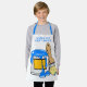 Was für eine große, sehr chaotische Dose blauer Farbe, aber diese Schürze wird helfen, die Kleider der Kinder sauber behalten! Der Text warnt "Achten Sie auf, malen Sie darüber", aber es ist einfach, den Text anzupassen, wenn Sie möchten.