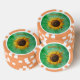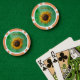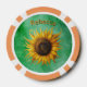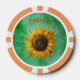 These poker chips have a big fancy spring time sunflower with a brown center and yellow petals ona background in shades of greens. Customise your text with the templates.
