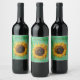 Big fancy Yellow sunflower on shades of green Weinetikett