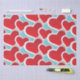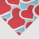 Gewebepapier mit einem sich wiederholenden Muster von einigen großen fetten Herzen in 2 Größen hell rot mit einem weißen Außenrand.