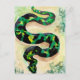 traditionelle Aquarellkunst einer großen, grün und schwarz gefärbten Schlange auf einer Postkarte.
