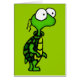 Niedliche kleine, grüne Cartoon Schildkröte mit googly Augen und zwei kratzigen Haaren. Originelle Cartoon-Kunst von Taylor Addams.