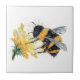 traditionelle Aquarellkunst einer großen Honigbiene, die Pollen aus einer gelben Blume auf einer Keramik sammelt