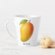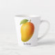 Big mango on your latte mug. Along with your name, text, or slogan in black below it. Sweet juicy fruit.