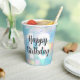 Maßgeschneiderte Party-Papiertassen mit pastellfarbenen Buchenbeleuchtung, Wolken und Party-Perlen mit großer bearbeitbarer Geburtstagsnummer und "Happy Birthday" in Schriftzeichen. Erhältlich in verschiedenen Größen. Siehe Auflistung für passende Elemente.