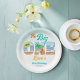 Die Big One surfen Strand tropischen Sommer Geburtstagsparty personalisierten monogramm gedruckte Papier Teller Vorlage. Schöne Sommer Strand Thema Geburtstage personalisierte Tischdekoration.
