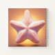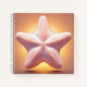 A cute illustration of a big pink starfish. Bright yellow light seems to shine behind it.