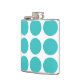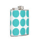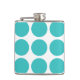 Niedliche und trendige Big Polka Dots Flask. Dieses Design zeichnet sich durch übergroße große Polka-Punkte in Türkis und Weiß aus. Text kann diesem Design hinzugefügt werden, um ihm eine persönliche Touch zu geben.