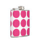 Niedliche und trendige Big Polka Dots Flask. Dieses Design zeichnet sich durch übergroße Polka-Punkte in Rosa und Weiß aus. Text kann diesem Design hinzugefügt werden, um ihm eine persönliche Touch zu geben.