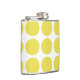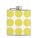 Niedliche und trendige Big Polka Dots Flask. Dieses Design zeichnet sich durch übergroße Polka-Punkte in Gelb und Weiß aus. Text kann diesem Design hinzugefügt werden, um ihm eine persönliche Touch zu geben.