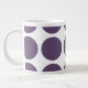 Niedliche und trendige Big Polka Dots Jumbo Tasse. Dieses Design zeichnet sich durch übergroße Kreispolka-Punkte in lila und weiß aus. Text kann diesem Design hinzugefügt werden, um ihm eine persönliche Touch zu geben.