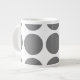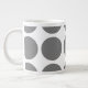 Niedliche und trendige Big Polka Dots Jumbo Tasse. Dieses Design zeichnet sich durch übergroße Kreispolka-Punkte in Grau und Weiß aus. Text kann diesem Design hinzugefügt werden, um ihm eine persönliche Touch zu geben.