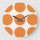 Niedliche und trendige Big Polka Dots Wall Clock. Dieses Design zeichnet sich durch übergroße Polka-Punkte in Orange und Weiß aus. Text kann diesem Design hinzugefügt werden, um ihm eine persönliche Touch zu geben.