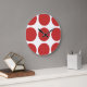 Niedliche und trendige Big Polka Dots Wall Clock. Dieses Design zeichnet sich durch übergroße Polka-Punkte in Rot und Weiß aus. Text kann diesem Design hinzugefügt werden, um ihm eine persönliche Touch zu geben.