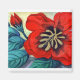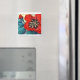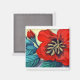 Big Red ist ein Mischmedienbild eines Hibiskus auf einem quadratischen Magneten.