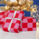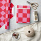 Modernes Schachbrettmuster mit den Farben Ihrer Wahl. Helles rotes und rosa Babyduschpapier. Geschenkpackung mit klassischem Muster.