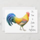 Original feines Kunstdesign eines farbenfrohen Ardenner-Hahnenwurfs von Carolyn McFann von Two Purring Cats Studio auf kundenspezifische Hähnchen / Farm themed Einladungen.