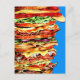Dieses Design besteht aus einem farbigen Bleistift, der von einem riesigen Sandwich gezeichnet wird, das zu einer Überflutung mit Wurst, Salat, Zwiebeln und Tomaten gestapelt wird.