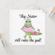 Big Sister Sake Boxen, Fliesen, Ziergegenstände, Notizbücher, Kissen werfen, Gel-Mousepads, Porto, Aufkleber, und andere große Schwesterbekleidung und Geschenkartikel mit einem Mädchen Frosch und Lilienpolster und Text, der lautet "Big Sister regiert noch das Pad!". Große Geschenke für ältere Menschen ist, wenn der neue kleine Bruder oder die neue Schwester kommt!