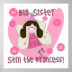 Big Sister noch die Prinzessin T - Shirt, Tasse, Taschen, Karten, Knöpfe, Aufkleber, Schlüsselketten, Kissen und andere große Schwesterbekleidung und Geschenke mit einer bezaubernden Märchenprinzessin auf einem großen rosa HerzHintergrund und kleinen rosa Blume mit Text, der lautet "Big Sister Still the Princess!".