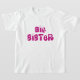 Der süße T - Shirt mit rosa Schriftzeichen, die "große Schwester" auszeichnen. Briefe werden von kleinen Blume betont.