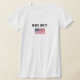 Zeigt die rote, weiße und blaue amerikanische Fahne mit US Flagge, plus "Big Sky" in schwarzem Text über der Fahne. Big Sky im Staat von Montana, südlich von Bozeman, ist ein beliebtes Ziel für Skifahren, Snowboarden, Snowshoeing, Zipling, Hundeschlitten, Snowmobiling und Wintersport. Im Sommer wandern, Golf spielen und reiten die Leute. Für die Bewohner von Big Sky und Montana, Amerikaner, Besucher, Touristen, Reisende, Naturliebhaber, Skifahrer, Snowboarder, Schneeschuhfahrer, Schneemobile, Wanderer. Große Souvenirs für oder erinnern sich an eine Reise oder Urlaub.