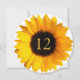 Chic Tischnummer-Karte in runder Form, mit Grafik einer großen gelben Sonnenblume, die die Karte bedeckt, mit gelber Zahl in der Mitte. Personalisieren Sie eine Karte für jeden Tisch am Empfang. Verwenden Sie einen klaren Plastikfloristenkartenpick, um die Tischmittelstücke anzubringen.