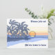Inspiriert von den Boardshorts und Aloha-Shirts der 60er Jahre, nutzt dieses Muster Button-Streifen, um die Uferlinie zu schaffen, während die Surfer auf die Pause bei Big Sunset an der Nordküste von Oahu warten.Dieses Design koordiniert mit unseren Big Sunset Einladungen, Grußkarten und Porto-Briefmarke. Diese individuell gestaltbare Einladung besteht aus drei Farben.