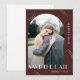 Elegante burgundy marsala ein Foto mit großen Typografie Hochzeit speichern Sie das Datum Ankündigung. Diese moderne Ankündigung besticht durch ein bogenförmiges Foto und einen hübschen, schlichten, goldenen Weißabdruck. Bitte schauen Sie sich diese trendige Hochzeitskollektion an, um Hochzeitseinladungen zu koordinieren und weitere Chic-Farboptionen zu erhalten.