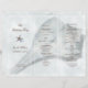 Starfish und eine große Muschel dekorieren dieses maßgeschneiderte Hochzeitsprogramm, das nach dem Kauf zu dritt gefaltet wird. Passen Sie den braunen Text auf beiden Seiten an, der über eine tropische Blitzkanone gedruckt wird.