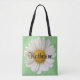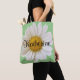 Ein nahes Foto einer Single-Blume mit weißer Daisy- mit individuelle Name in sehr schwarzem Skript auf schlanke grüne Hintergrund. Personalisieren Sie das Programm durch Bearbeiten des Namens.