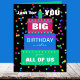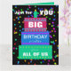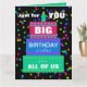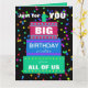 Diese große Geburtstagskarte aus der Gruppe enthält einen dreischichtigen Kuchen auf der großen Geburtstagskarte. Die Karte lautet "Just for You Big Birthday wünscht von uns allen". Im Inneren erscheinen die Worte Happy Birthday in Großdruck. Das macht eine tolle Geburtstagskarte aus einer Gruppe von Leuten. Copyright Kathy Henis