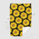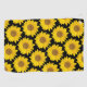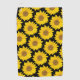 Ein Muster großer gelber Sonnenblumen auf schwarzem Hintergrund.