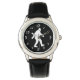 Uhr, Klassische Damenuhr mit schwarzen Lederarmband