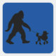 Bigfoot gehen auf seinem Poodle Quadratischer Aufkleber