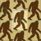 Fun Bigfoot Stoff gemustert mit dunkelbraunen Bigfoots auf beigem Hintergrund